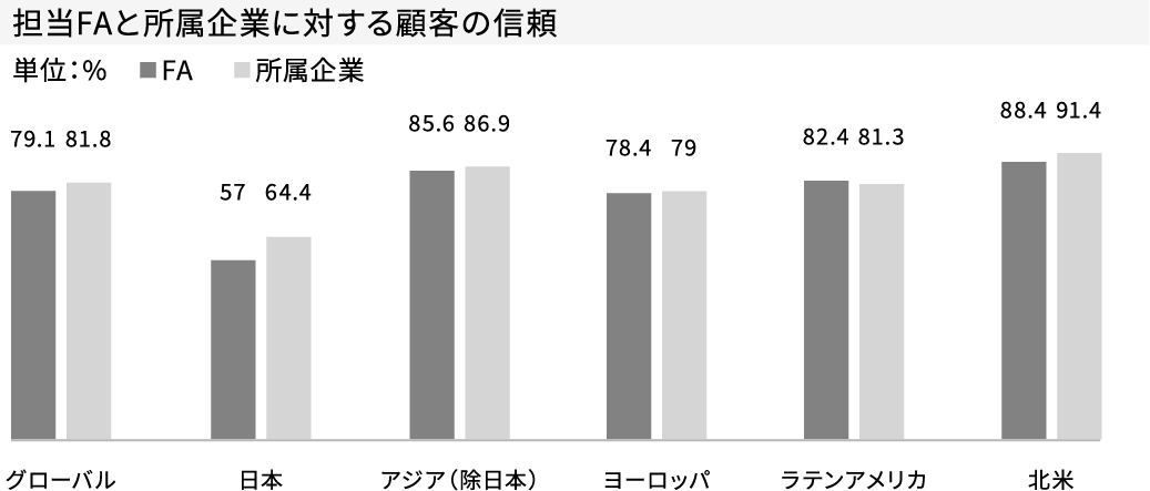 ところが、日本の富裕層における担当ファイナンシャルアドバイザー(FA)やその所属企業に対する満足度は一般に低い。実際、同じCapgeminiの担当FA満足度調査では、グローバル80%、アジア(除日本)86%、ヨーロッパ78%、北米88%に対して、日本の富裕層においては57%にすぎない。半数近くの人が満足していないという現状があるのだ(出典同上)。富裕層のサポート体制をいかに確立するか。それが金融界の、ひいては日本社会の大きなテーマであり、常に富裕層ビジネスの先頭を走ってきた三菱UFJモルガン・スタンレー証券が果たさなければならない大きな任務になっている。