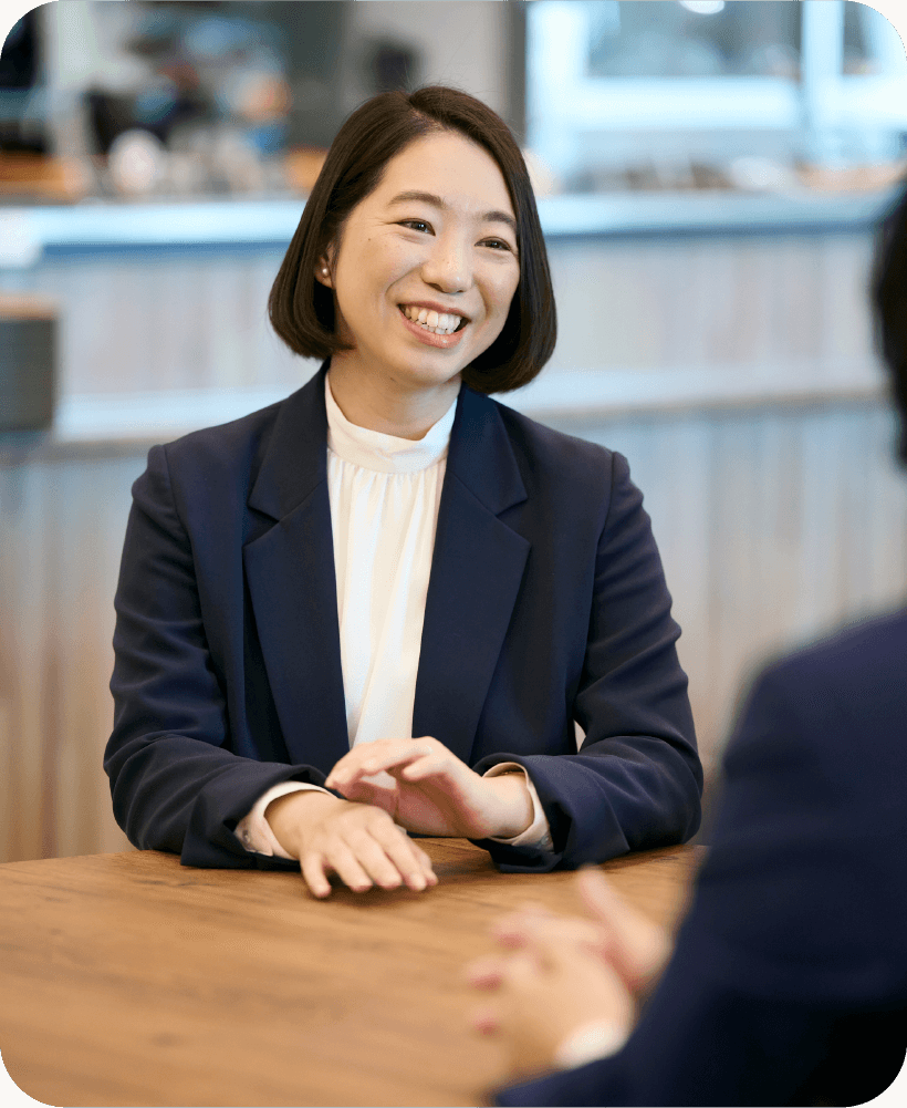 - 2008年入社。第1子・第2子の出産にあわせて2度の育休を取得し、通算で約4年間育児に向き合ってきた。現在はフルタイムで復職し、セレクト勤務も活用しながら本店コンサルティング第一部にて、チームの業務推進やお客さま対応を担っている。