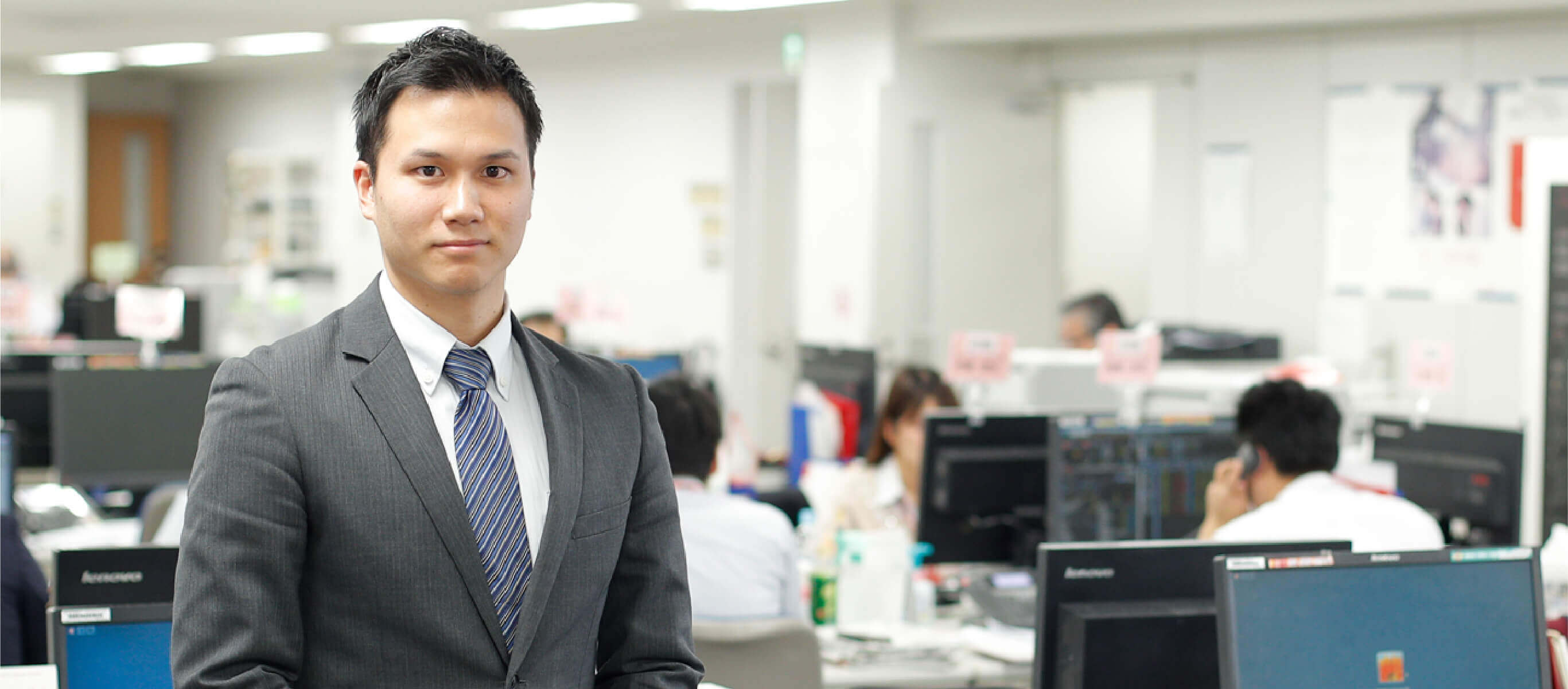 私は、上場法人及び未上場法人のオーナーやそのご一族の方等、主に個人富裕層のお客さまに資産運用や事業承継等のコンサルティングを行っています。日々の業務において、私が新人の時から大切にしていることがあります。それは、常に「明るく元気に仕事をすること」です。そのルーツは、私が幼少期から打ち込んできた野球にあります。スポーツに勝ち負けは付き物ですが、必死に努力をしたのに結果を出せなかった自分の不甲斐なさに落胆してしまい、私のその姿がチーム全体の士気を低下させてしまった事がありました。今でも鮮明に覚えている苦い経験です。しかし、その経験があったから、辛い時こそ上を向いて元気を出すことの重要性を学ぶことができ、「自分の前向きな姿で周囲の人もポジティブに出来る人物になりたい」と思いました。ビジネスの世界でも、個人・チームの成果が出ない時は必ずあります。その時は、どうすれば結果に繋がるのかチームで方法を話し合い、私が率先して声を出すことでチームを盛り立てようと心掛けています。そこに先輩・後輩の立場は関係ありません。私たちは日々変動する商品を扱うので、少しでもマーケットからの集中を切らしてしまっては、お客さまに多大なご迷惑を掛けてしまいます。そのため、立場を問わず、チーム全員で声を掛け合い、意識を高め合うことが重要なのです。お客さまと接するときも同じです。単にマーケットや商品の説明をするだけでなく、常に明るく元気に振る舞うことで、お客さまに安心感を与えられる存在でありたいと思っています。そういった姿勢がお客さまに伝わり「一生懸命やっているから、君のところでやりたい」と、「人」としての信頼が新規の取引に繋がった事もありました。証券営業は正解が無く、ゴールの期日も設定されていない仕事です。だからこそ、私は当たり前の事や自分に出来る事を、愚直に継続しながら、お客さまと向き合っています。