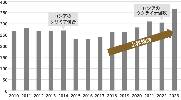 (出所:World Bank Groupより取得したストックホルム国際平和研究所のデータに基づき三菱UFJモルガン・スタンレー証券作成)