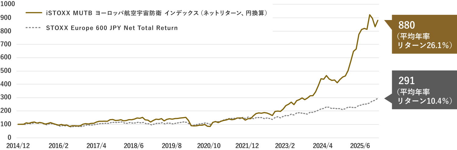 連動対象指標のパフォーマンス(2014年12月末~2025年12月末)