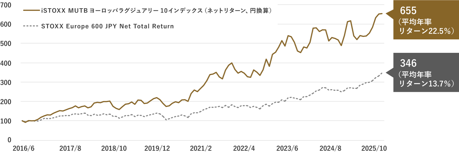 | 連動対象指標 | iSTOXX MUTB ヨーロッパラグジュアリー 10 インデックス(ネットリターン、円換算) |