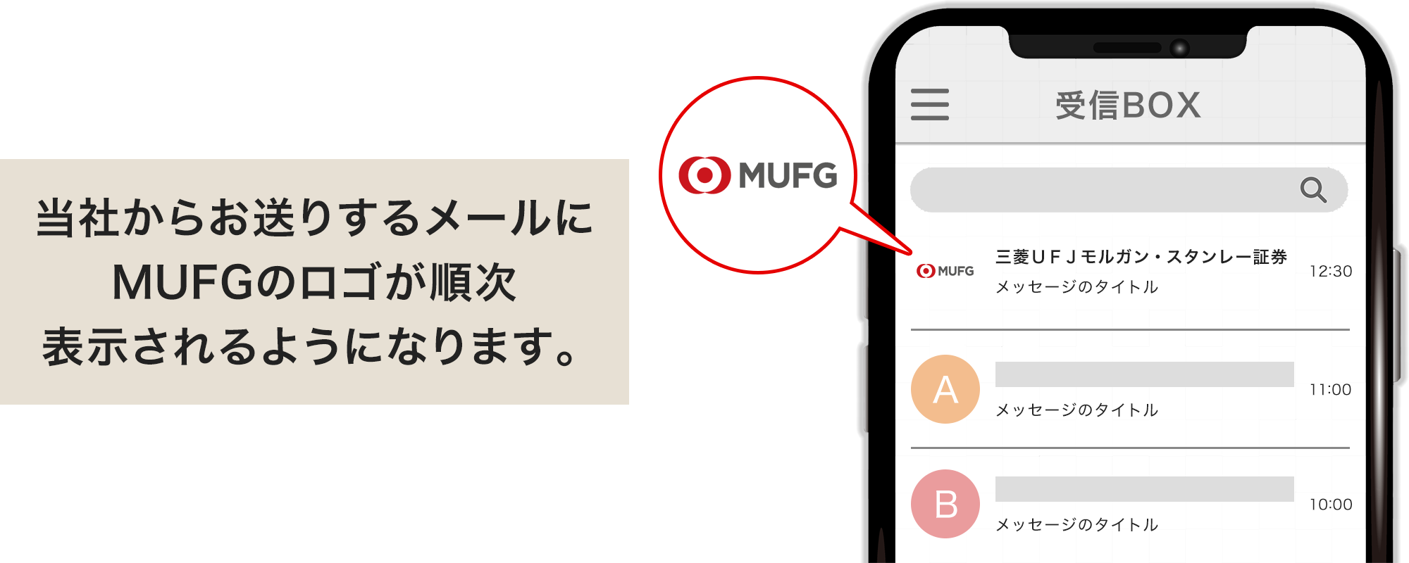 当社からお送りするメールに商標登録しているMUFGグループシンボルのロゴを表示することで、正規のメールであることが視覚的に認識できるようになります。