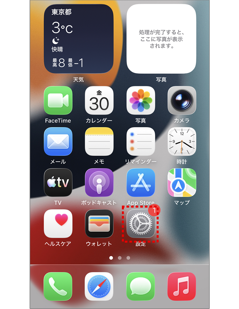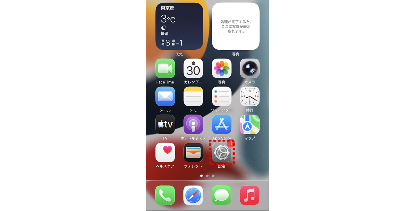 1 ホーム画面にある【設定】をタップしてください。