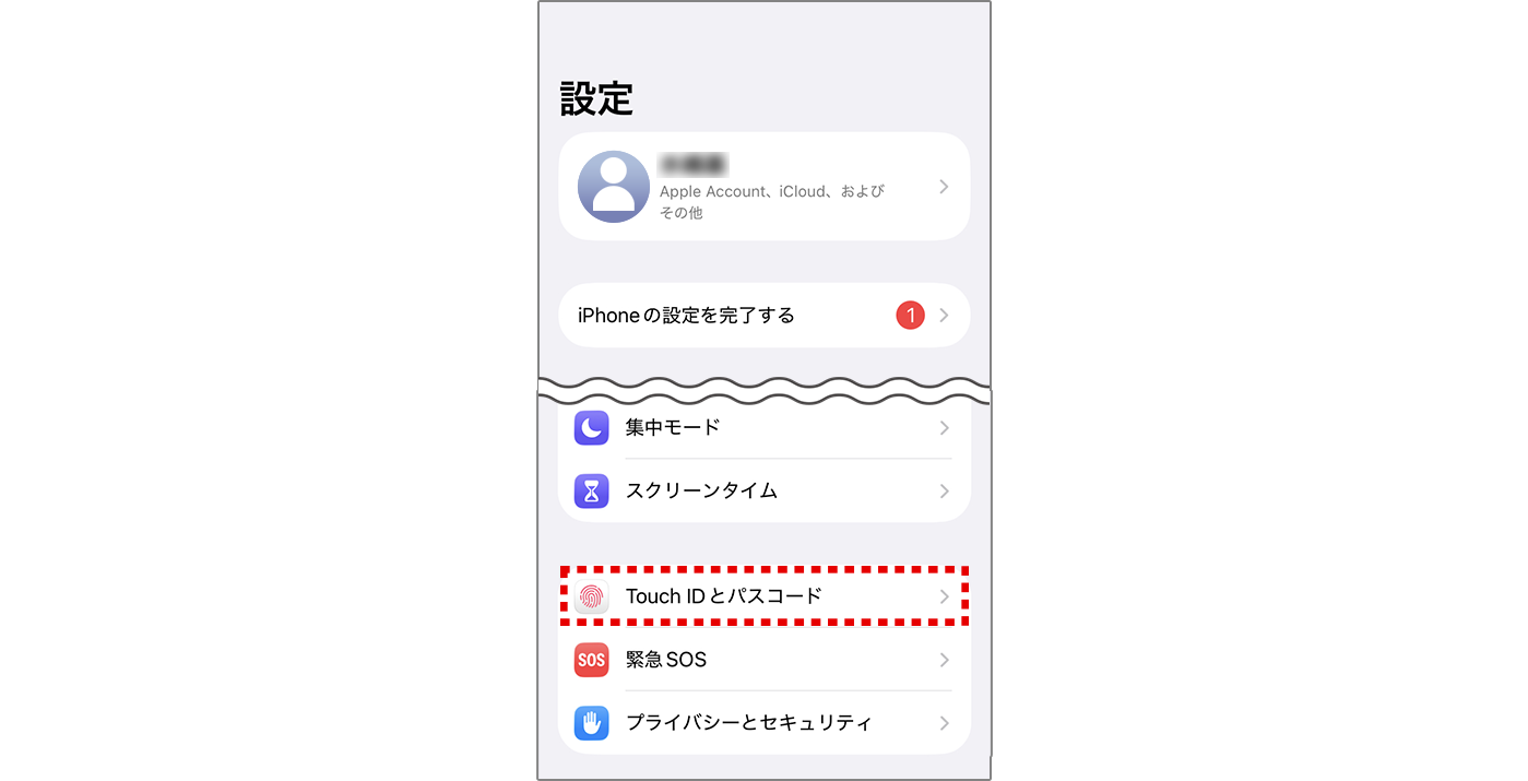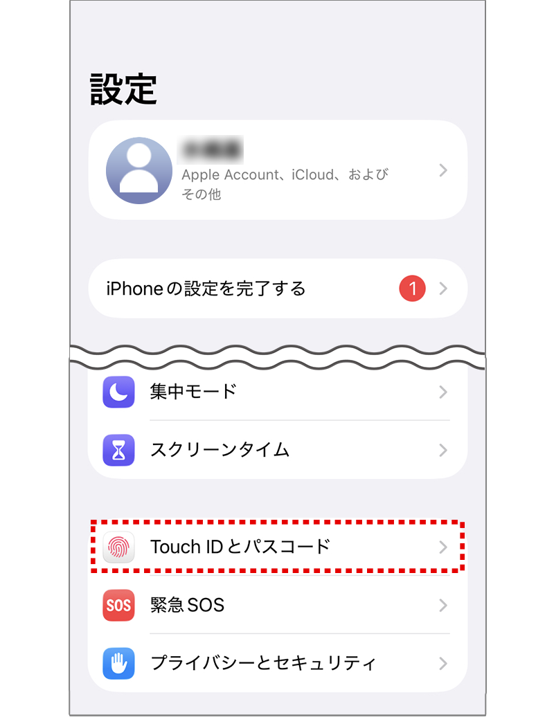 2 【Face IDとパスコード】(または【Touch IDとパスコード】)をタップしてください。