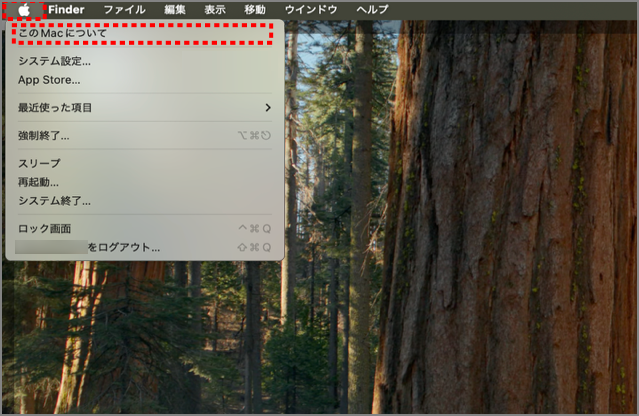 1 お使いのPCで「Appleメニュー」>「このMacについて」へ進んでください。