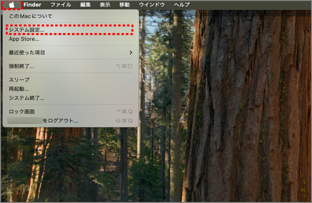 1 お使いのPCで「Appleメニュー」>「システム設定」へ進んでください。