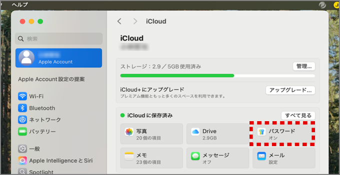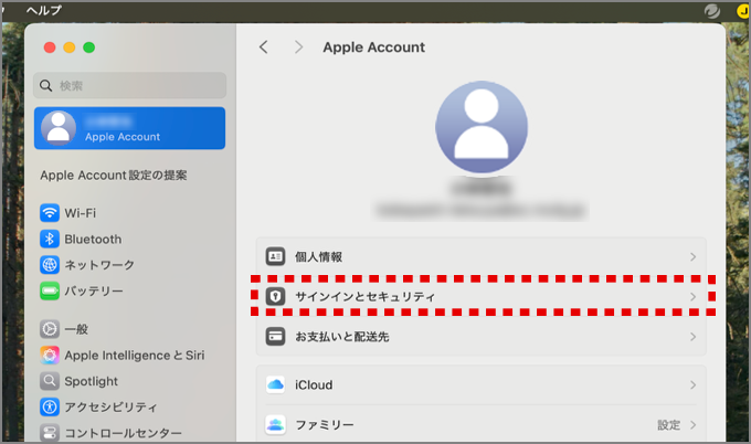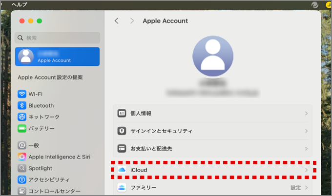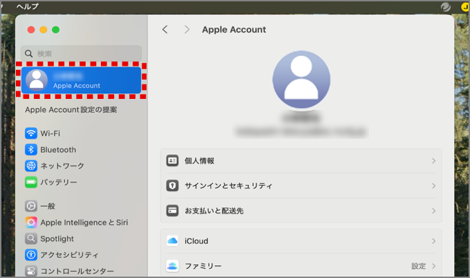 2 ログイン済みのAppleアカウントが表示されていることを確認してください。
